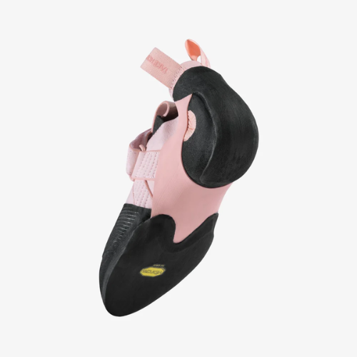 A sola bipartida é equipada com borracha Vibram XS GRIP, reconhecida por sua durabilidade e excelente aderência. A cobertura generosa de borracha nas regiões dos dedos e calcanhar assegura desempenho superior em diversas técnicas, incluindo "heel hooks". O design do calcanhar, com borracha que se estende até a parte superior da sapatilha, oferece o equilíbrio perfeito entre rigidez e flexibilidade, proporcionando segurança e sensibilidade nas escaladas mais desafiadoras.